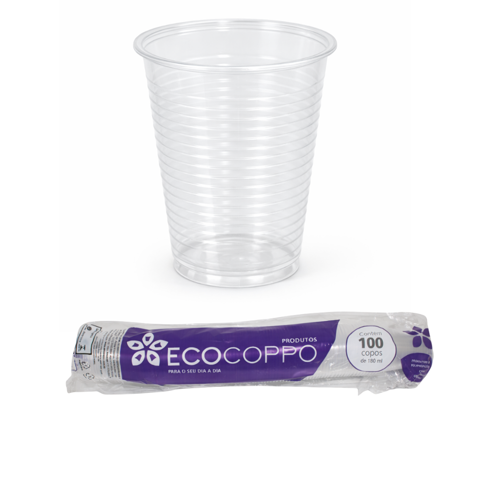 DESCRIÇÃO: COPO PLÁSTICO PP ECOCOPPO TRANSPARENTE DE 180ML, RESISTENTE E PRÁTICO PARA SERVIR BEBIDAS EM EVENTOS, ESCRITÓRIOS, FESTAS E ESTABELECIMENTOS COMERCIAIS. FABRICADO EM POLIPROPILENO DE QUALIDADE. CAIXA COM 25 PACOTES DE 100 UNIDADES, TOTALIZANDO 2500 COPOS. IDEAL PARA USO DIÁRIO.