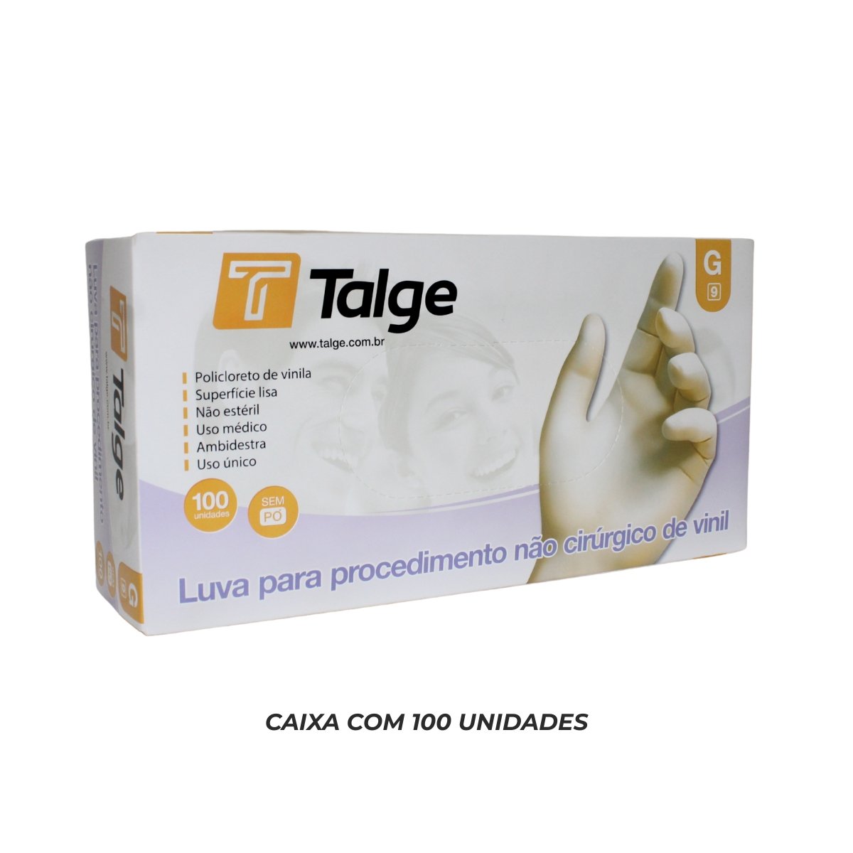 LUVA DE VINIL TALGE G SEM PÓ, RESISTENTE E CONFORTÁVEL, IDEAL PARA PROTEÇÃO DAS MÃOS EM ATIVIDADES DOMÉSTICAS E PROFISSIONAIS. PACOTE COM 1000 UNIDADES.