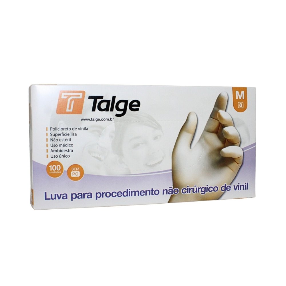 LUVA DE VINIL TALGE M SEM PÓ OFERECE PROTEÇÃO E CONFORTO, IDEAL PARA USO PROFISSIONAL, LIMPEZA E MANUSEIO SEGURO. CONTÉM 100 UNIDADES.
